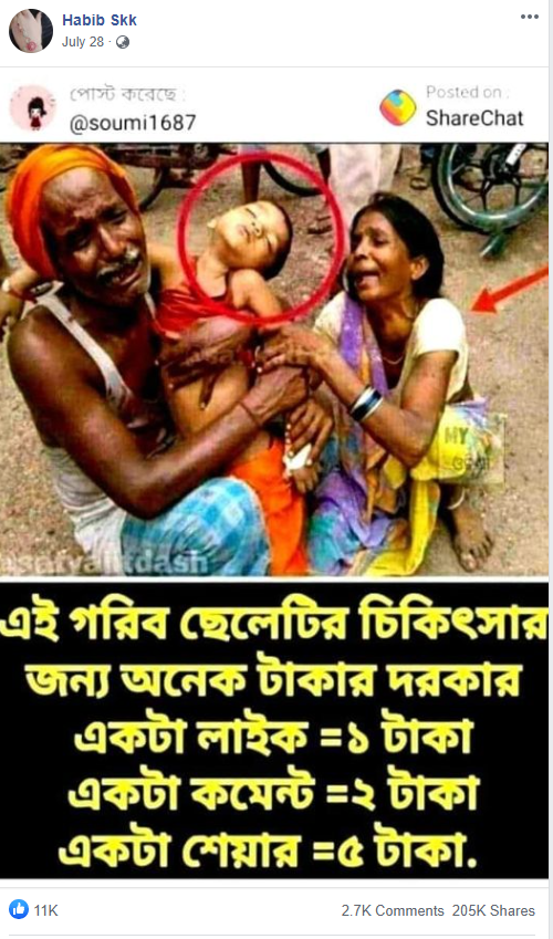 মাঝে মধ্যেই র্মর্মস্পর্শী ছবি দেখা যায় সোশ্যাল মিডিয়ায়। যেখানে হয় আর্থিক সাহায্য অথবা লাইক, কমেন্ট, শেয়ার চাওয়া হয়। সেগুলোর বেশীর ভাগই ভুয়া, উদ্দেশ প্রণোদিত এবং প্রতারণামূলক। তেমনই একটি ছবি সম্প্রতি,…