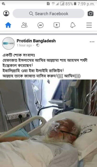 হেফাজতে ইসলামের আমির আহমেদ শফির অসুস্থতা ও চিকিৎসা নিয়ে গুজব ও বিভ্রান্তিকর প্রচারণা চলছে সামাজিক যোগিযোগ মাধ্যমে। অসুস্থ হয়ে গত রবিবার (৭ জুন) চট্টগ্রাম মেডিকেল কলেজ (চমেক) হাসপাতালে ভর্তি হওয়ার,…